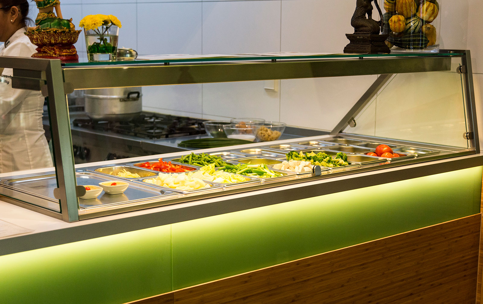 Thai-Sawadi lässt Sie die Vielfalt der thailändischen Küche unmittelbar genießen: Erleben Sie live, wie Ihre Mahlzeiten auf heißer Flamme gegart oder gebraten werden. Schauen Sie dabei zu, wie Zutaten und Gewürze mit geschickter Hand in großen Pfannen zischend und brutzelnd in thailändische Spezialitäten verwandelt werden. Das gibt’s in keinem Restaurant!